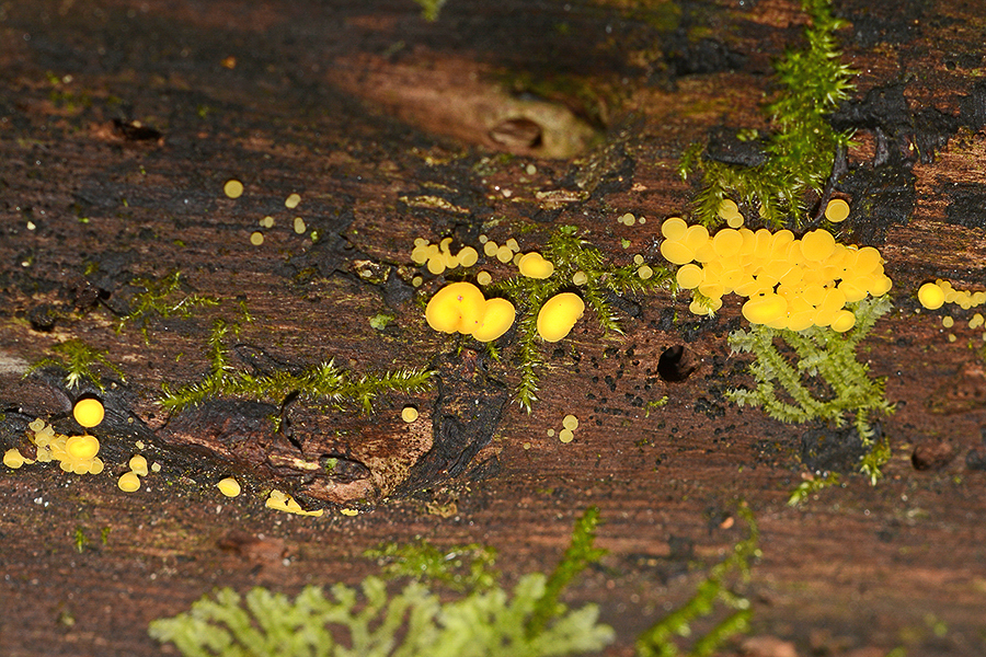 Helotiaceae (Bisporella citrina) Zitronengelber Reisigbecherling / Postranig Sattnitz, Kärnten/A, Oktober 2019