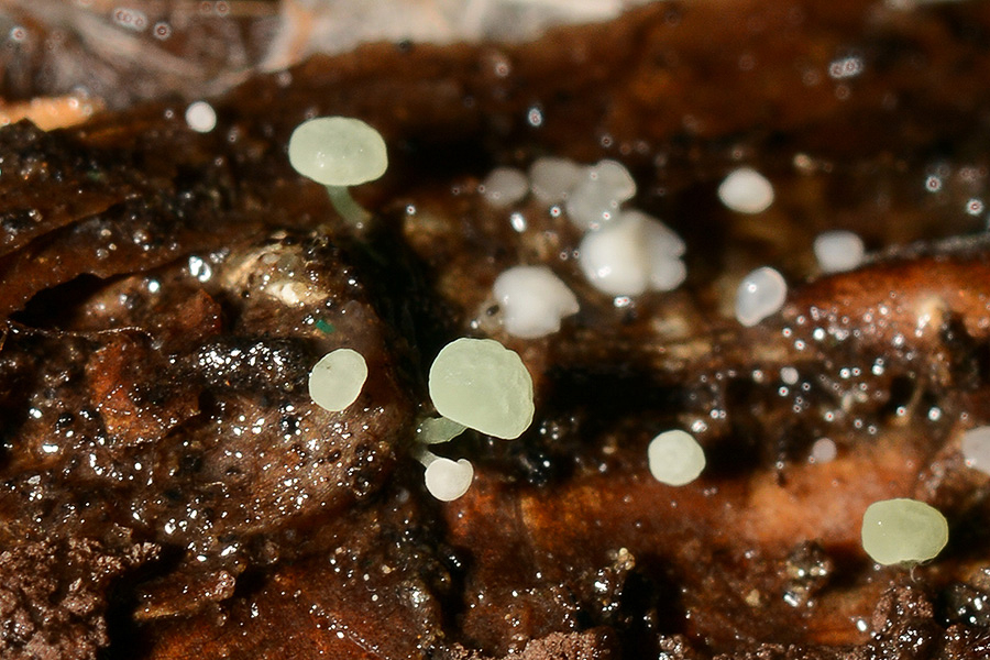 Helotiaceae (Claussenomyces sp., C. prasinulus?) Lauchgrünes Wandelsporbecherchen? / Drasendorf nördl. Klagenfurt am Wörthersee, Kärnten/A, Dezember 2019